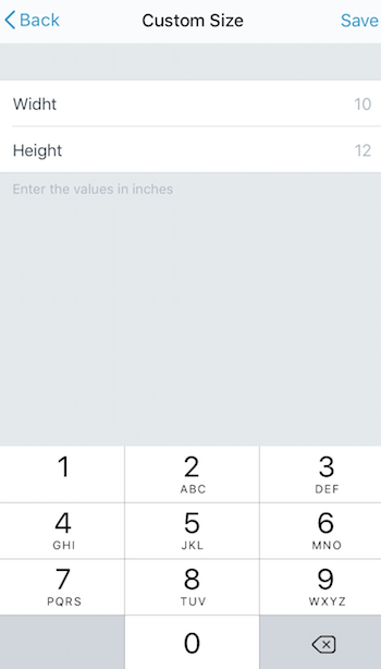 - Geben Sie die Abmessungen ein, wenn Sie Benutzerdefinierte Größe auswählen.