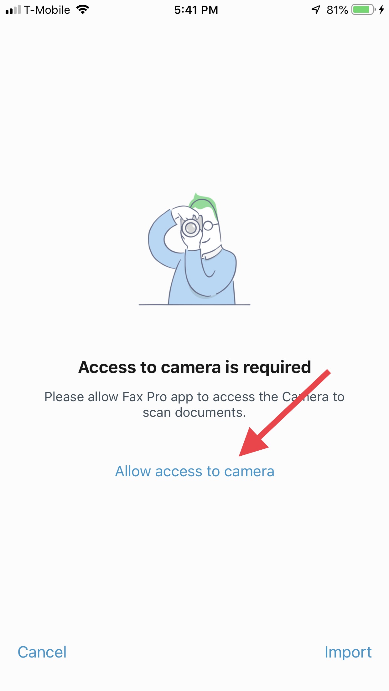 Tipp: Die Berechtigung muss nur einmal erteilt werden. Sie können den Zugriff in den Einstellungen Ihres iPhones unter Datenschutz > Kamera > Fax verwalten.
