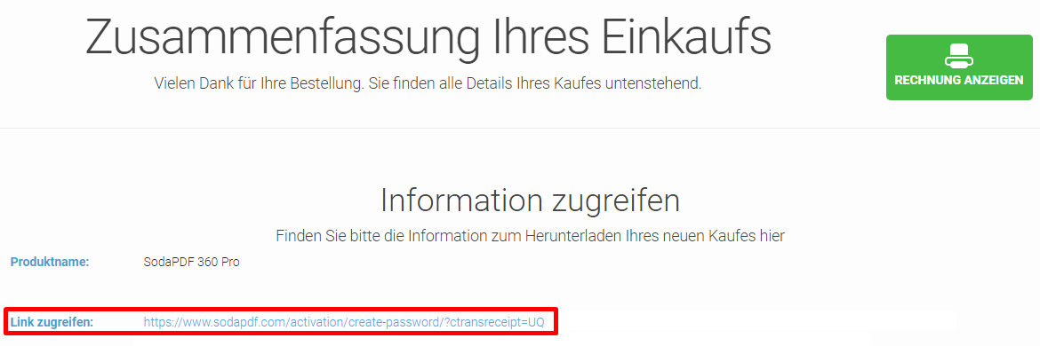 - Öffnen Sie die Kaufbestätigungs-E-Mail.
