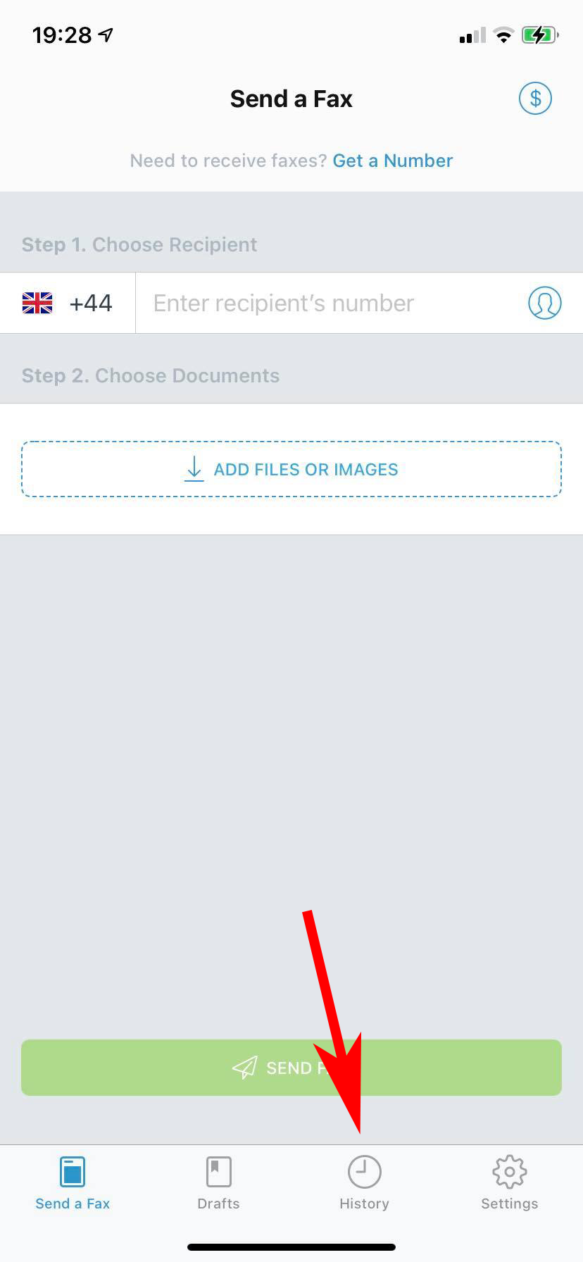 Creating and sending a fax has never been simpler. The Send a Fax home screen (the left tab at the bottom of your screen) has a simple design to allow you to send a fax quickly.