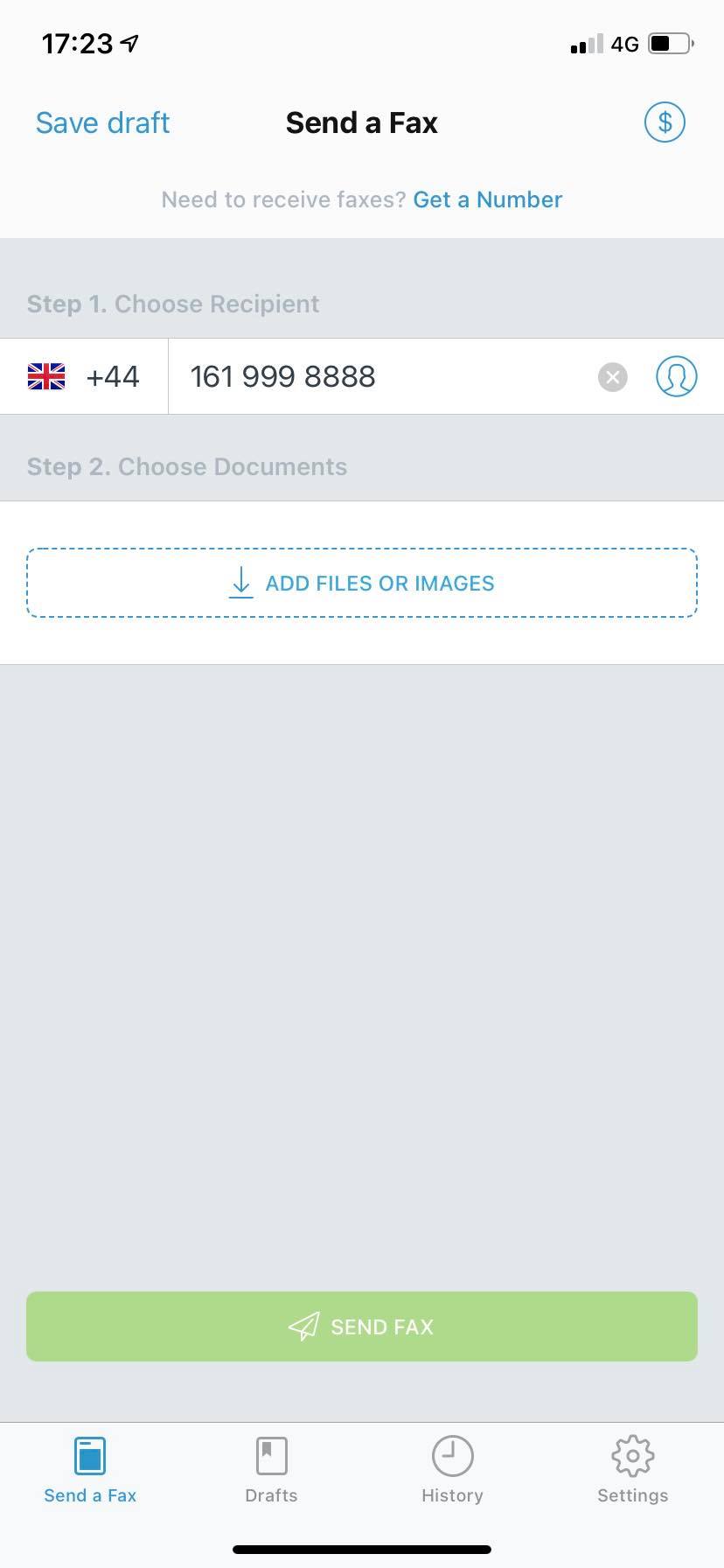 La aplicación Fax desde iPhone — Enviar fax le permite enviar faxes fácilmente a otros países.