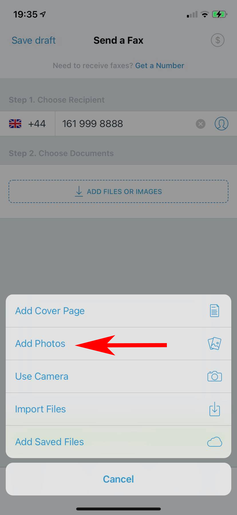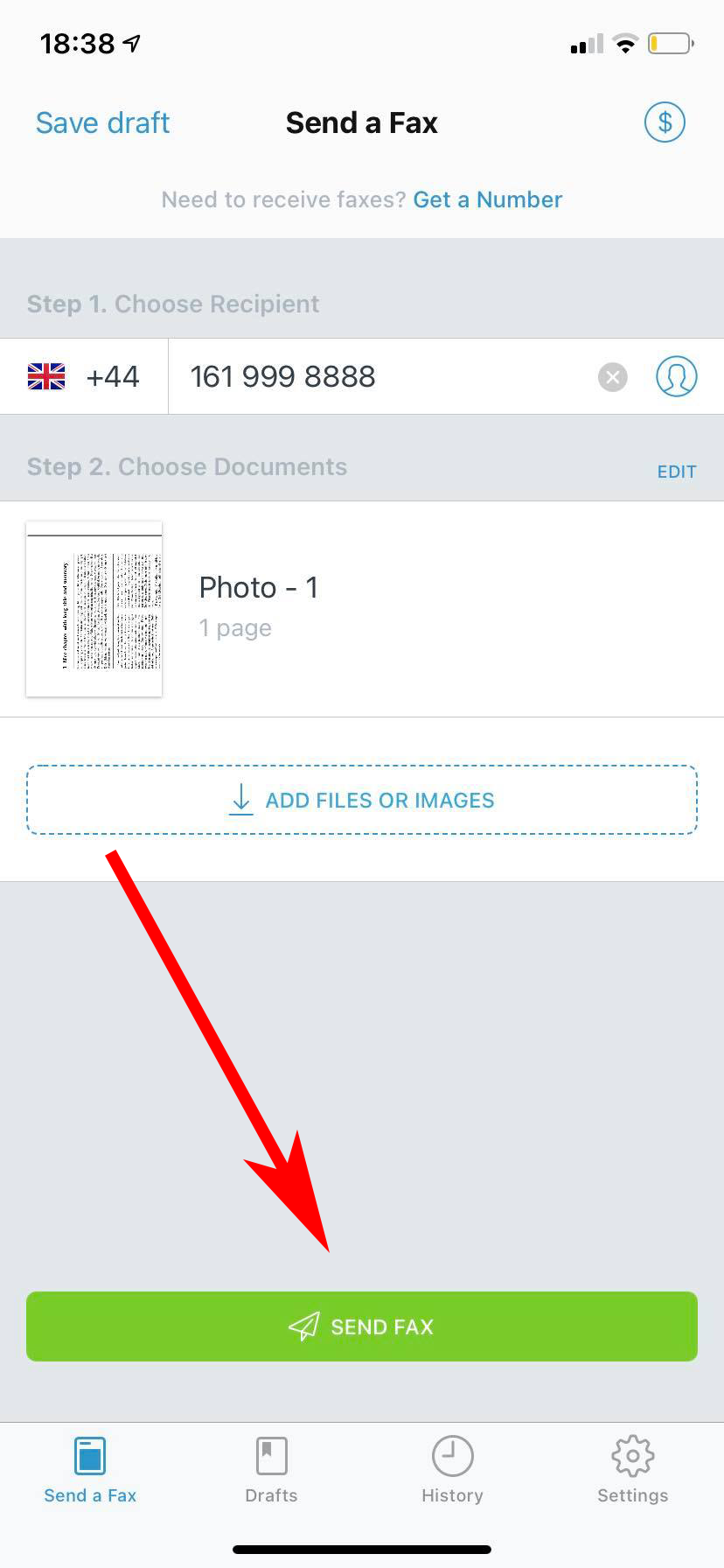 12. Compre un plan de suscripción necesario para enviar un fax tocando el icono '$' en la esquina superior derecha de su pantalla.