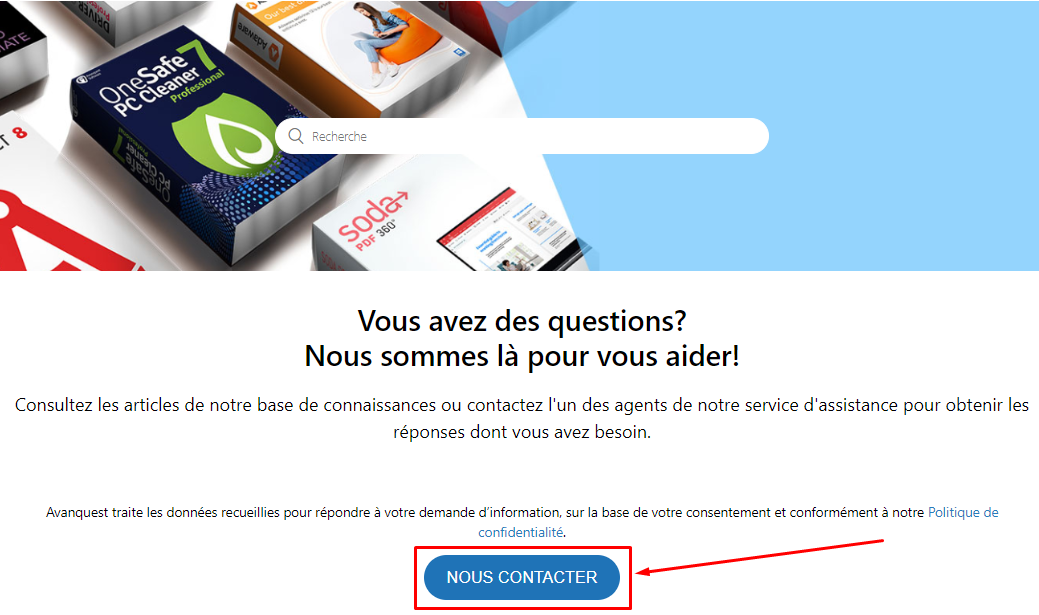 Vous trouverez l’option Nous Contacter sur la page d’accueil de l’assistance. Nous vous encourageons à nous envoyer des captures d’écran ou des documents problématiques pour gagner du temps plus tard.
