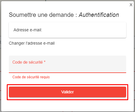 - Entrez le code et cliquez sur Valider. Vous pourrez alors ouvrir une demande.