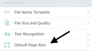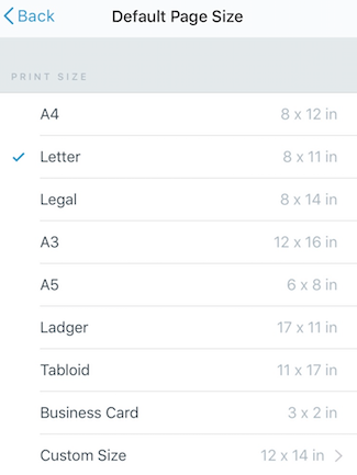 - Dans le menu Paramètres, sélectionnez Taille de page par défaut.