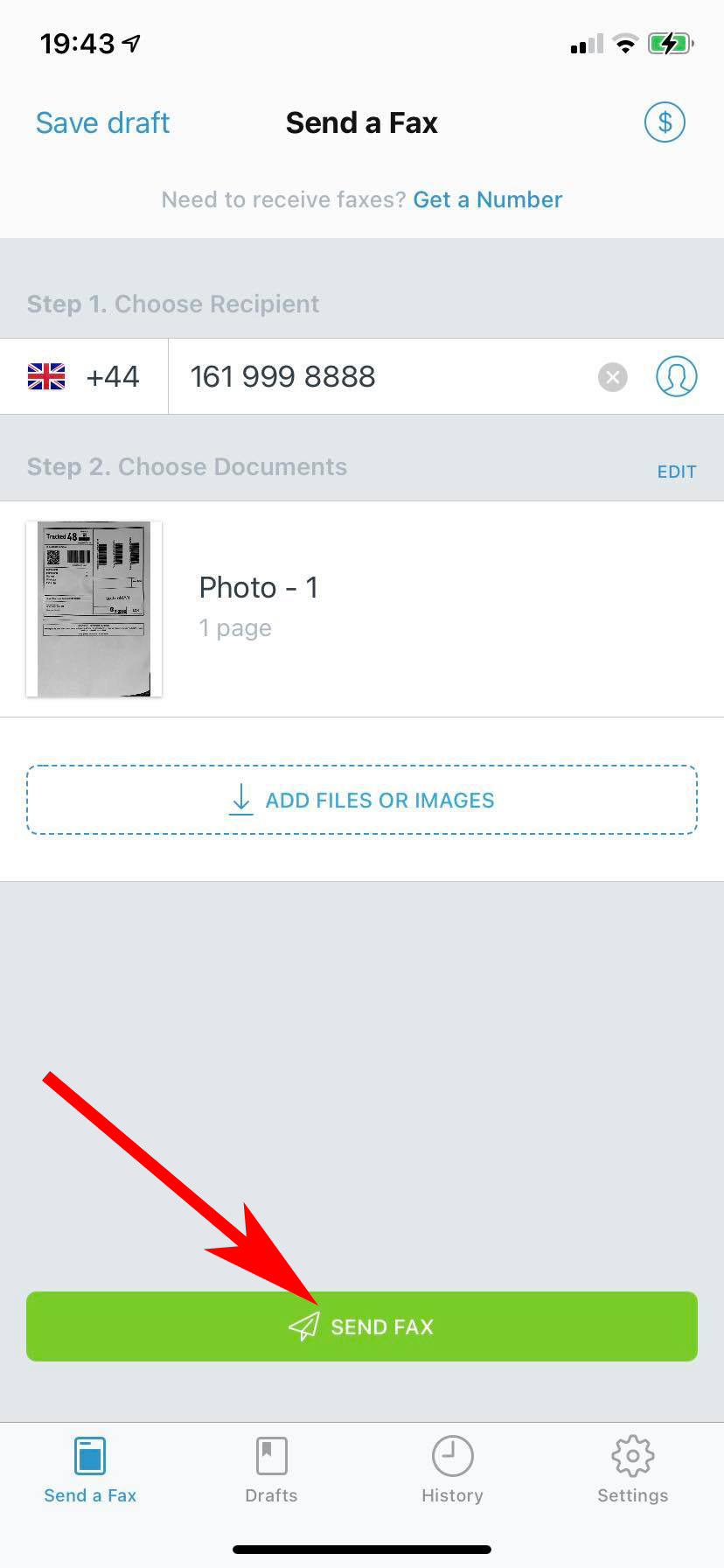 Création d'une télécopie à l'aide de l'appareil photo
