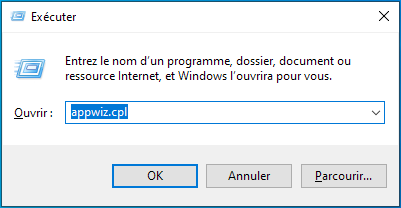 2. Tapez « appwiz.cpl » et appuyez sur Entrée ou cliquez sur OK.