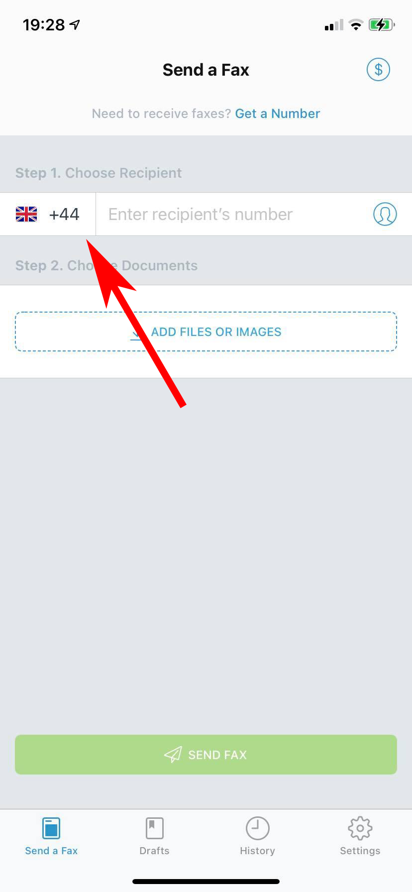 L'app Fax da iPhone - Invia fax consente di inviare facilmente fax ad altri paesi.