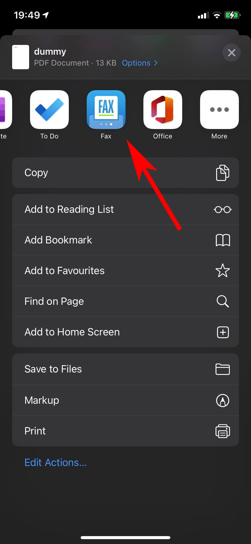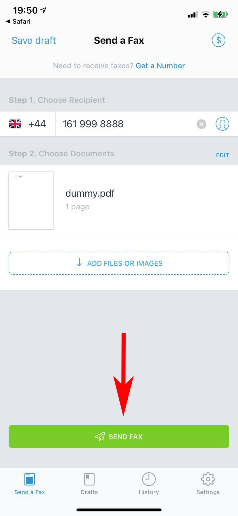 4. Si apre l'app Fax e il documento importato viene ora popolato nella schermata Invia un fax.