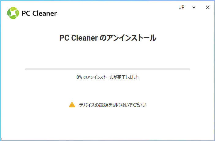5.アンインストールの進行状況が表示されます。完了すると、プログラムはアンインストールされます。