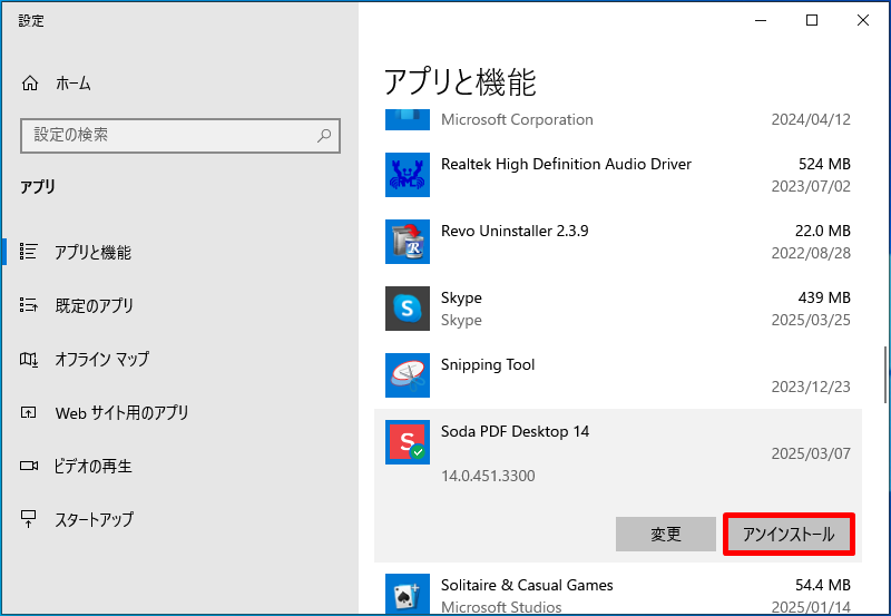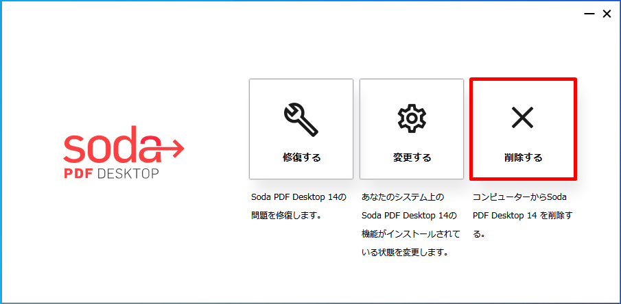 ここでは、ソフトウェアをアンインストールする方法の手順を見つけることができます。例として、PC CleanerとSoda PDFをアンインストールします。下記の方法で操作できます。